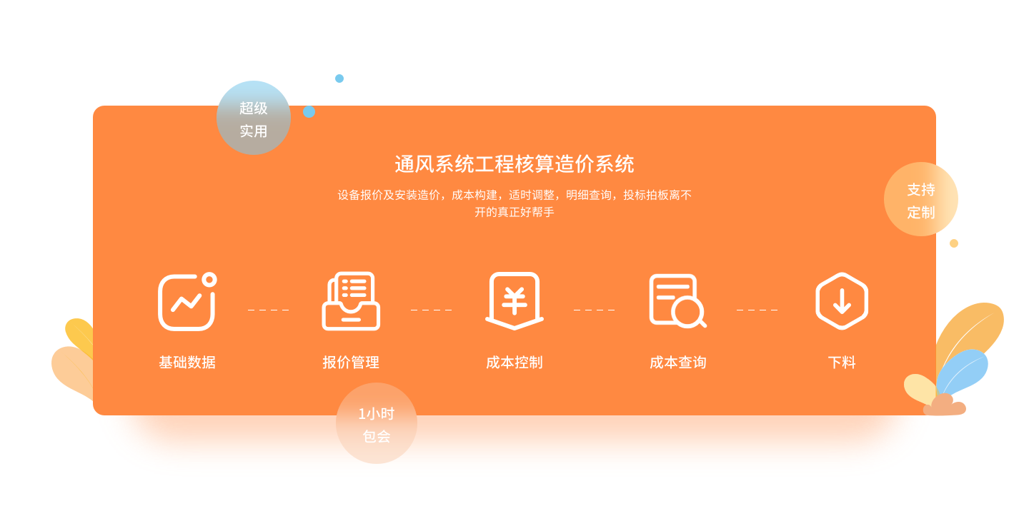 包括風機閥風口簡易報價、風機閥風口成本核算報價、通風管道安裝成本核算報價、風口噴塑計算報價、盤管柜機成本核算報價、組合式空調(diào)機組核算報價、表冷器成本核算報價等軟件。